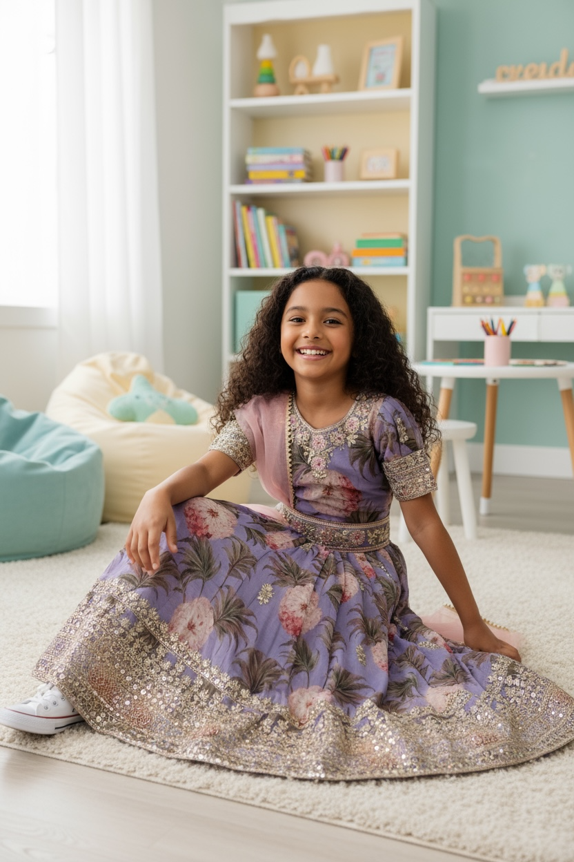 Darling, true elegance starts young. If you wish to elevate her sparkle, this Ready To Wear Kids' Gown is the answer. It is a signature piece from our designer collection, perfectly embodying the fun of a princess moment with the polished finish of Indo Chic style.